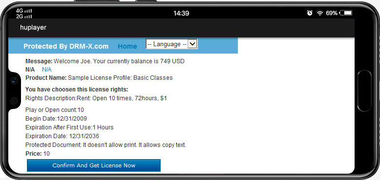 - License Rights Management: Restrictions on encrypted content through license rights, such as disallowing printing, count of prints, count of plays, license expiration date, prevent screen recording, and prohibiting virtual machines.